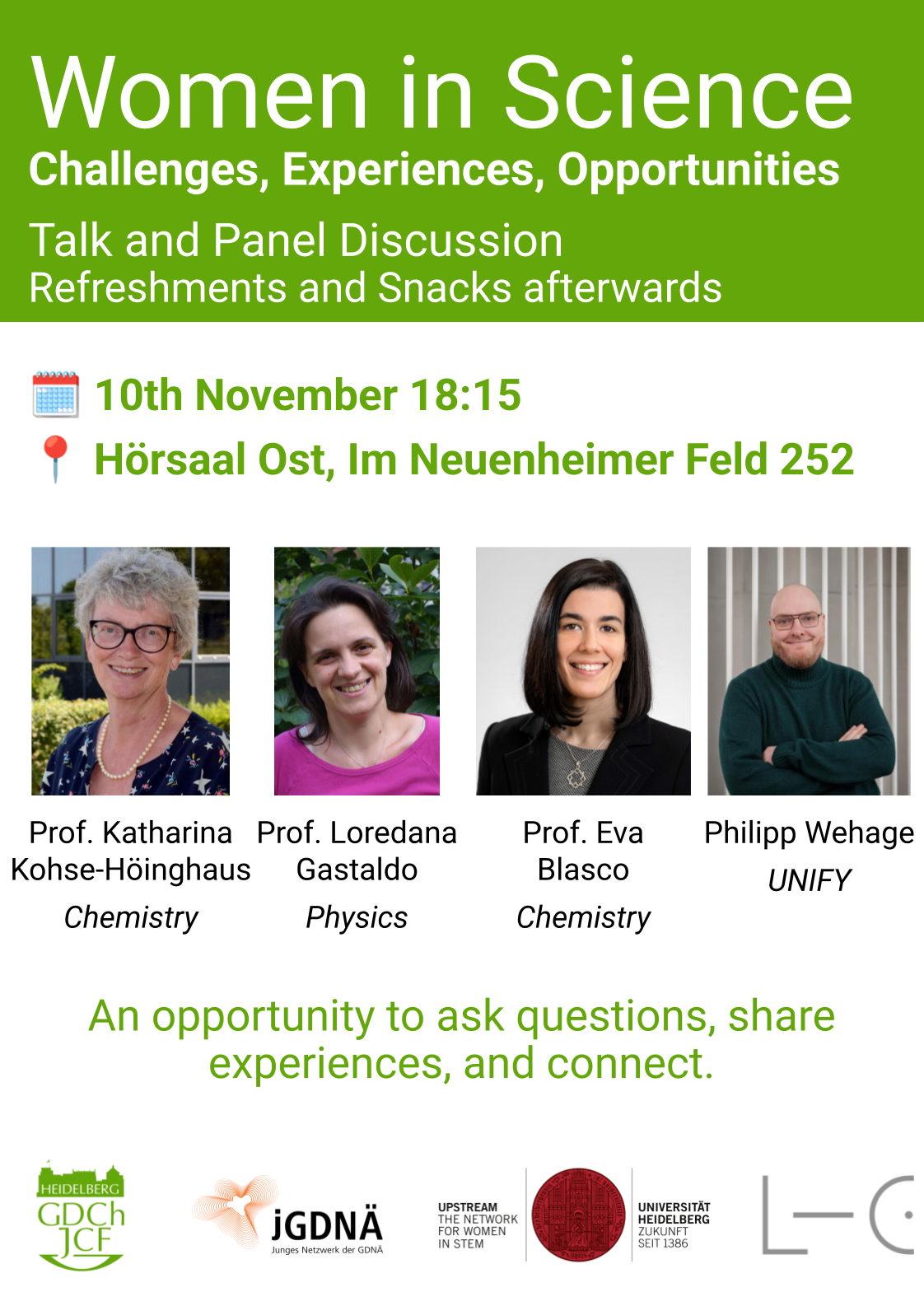 Talk and panel discussion with Prof. Katharina Kohse-Hoeinghaus (Chemistry), Prof. Loredana Gastaldo (Physics), Prof. Eva Blasco (Chemistry) u.a.